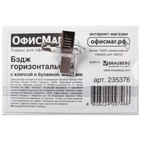 Бейдж офисмаг, 90х57 мм, горизонтальный, жесткий, с клипсой и булавкой (со штрихкодом), 235376