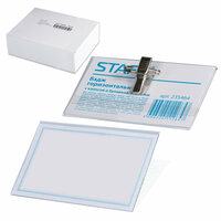 Бейдж STAFF - 90х57 мм - Горизонтальный - С клипсой и булавкой (в упаковке со штрихкодом) - 235464