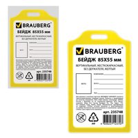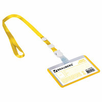 Бейдж школьника BRAUBERG, 55х90 мм, горизонтальный, на ленте со съемным клипом, желтый, 235764