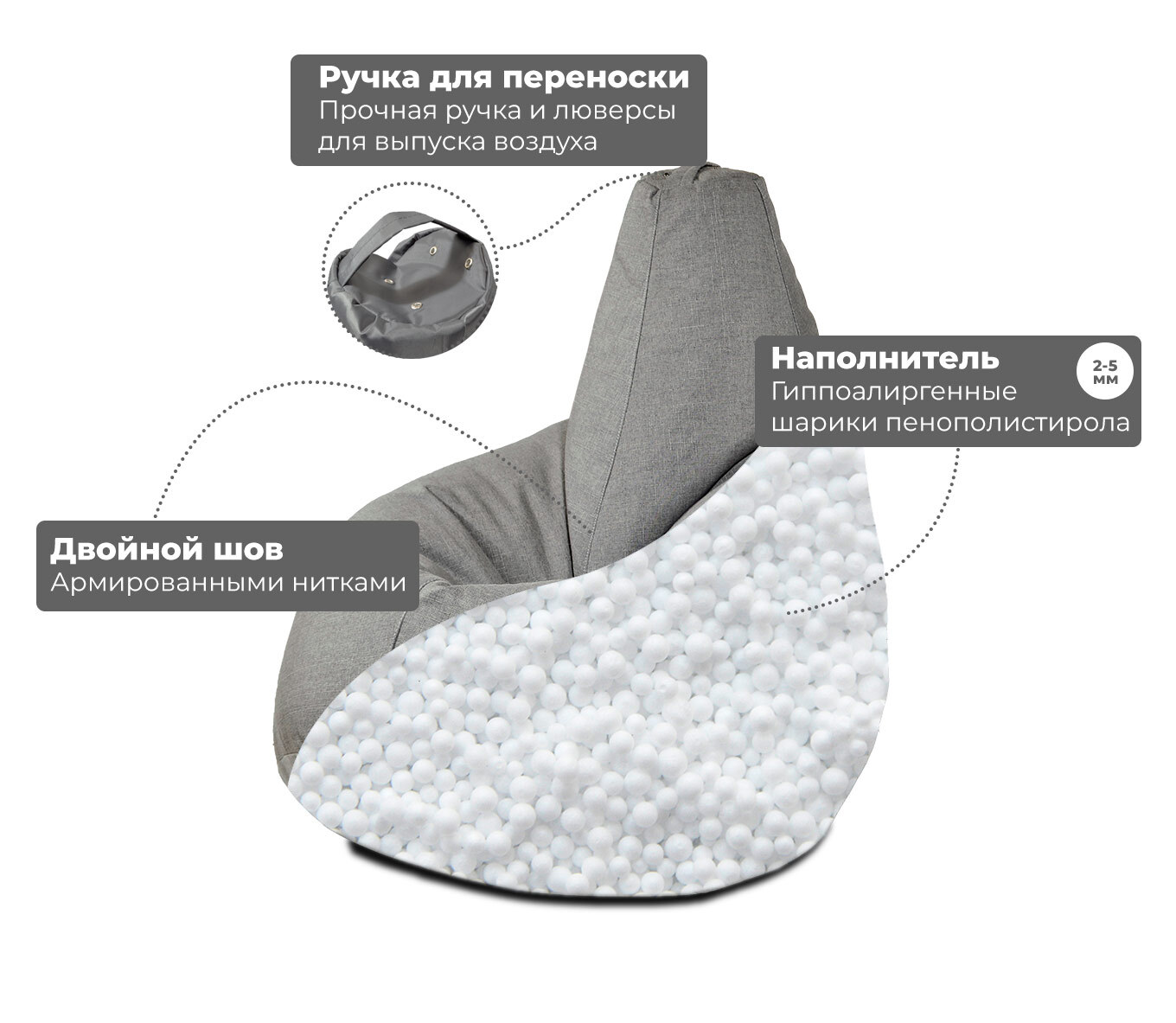 Бескаркасный пуф Груша, Спанбонд, Размер XL