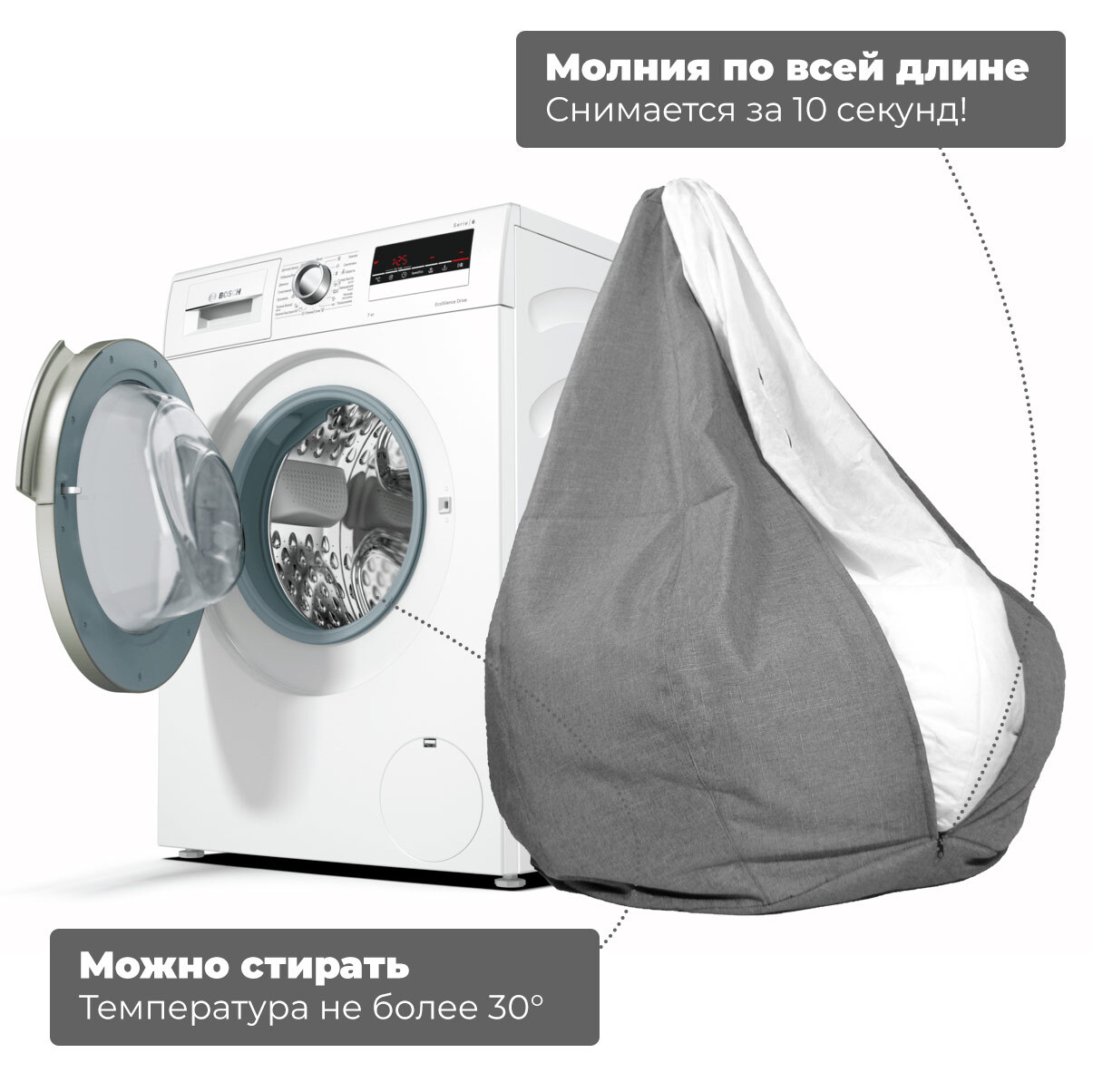Бескаркасный пуф Подушка, Текстиль