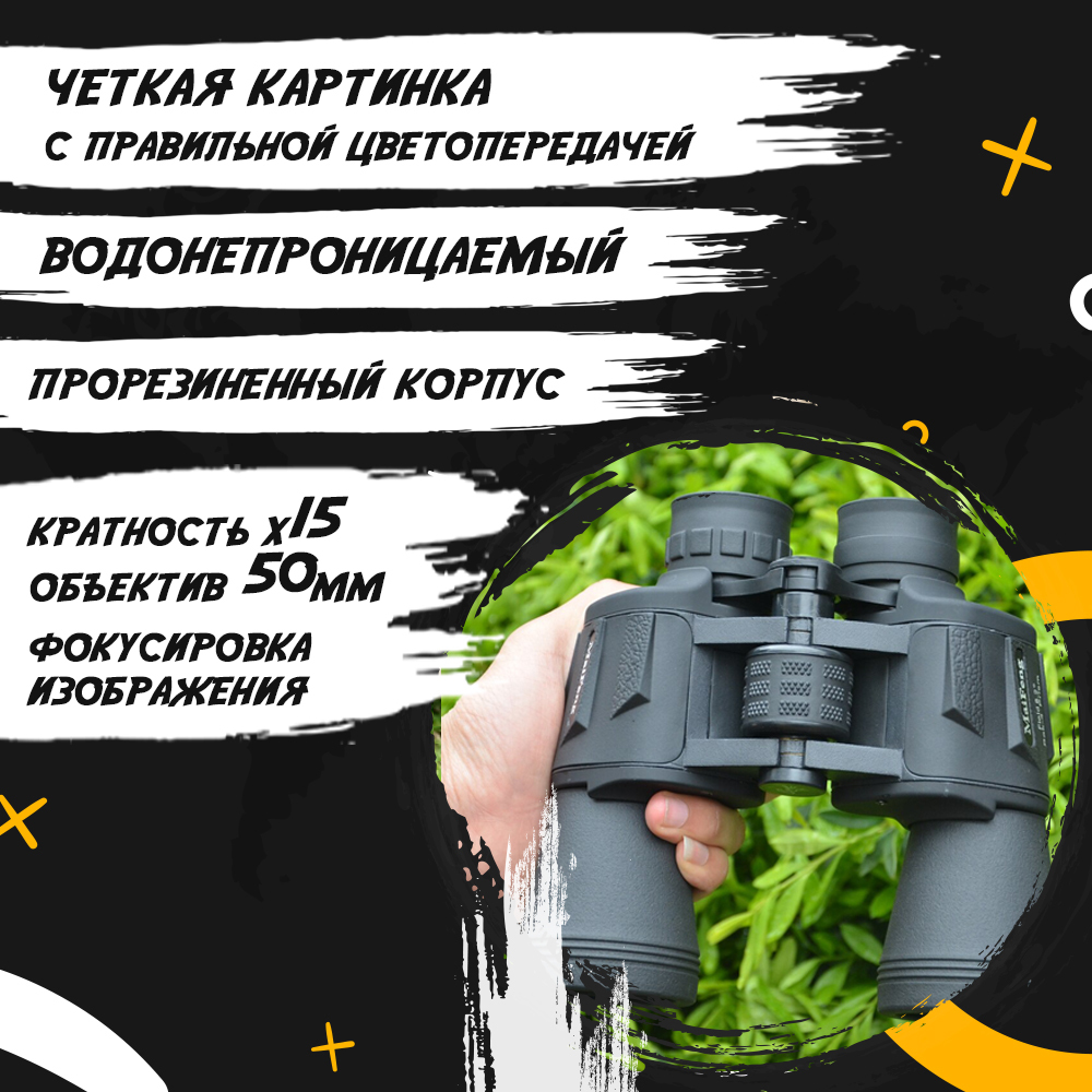 Бинокль Мощный Водонепроницаемый с Фокусировкой для Охоты, Рыбалки, Туризма, Наблюдения 15x 50мм