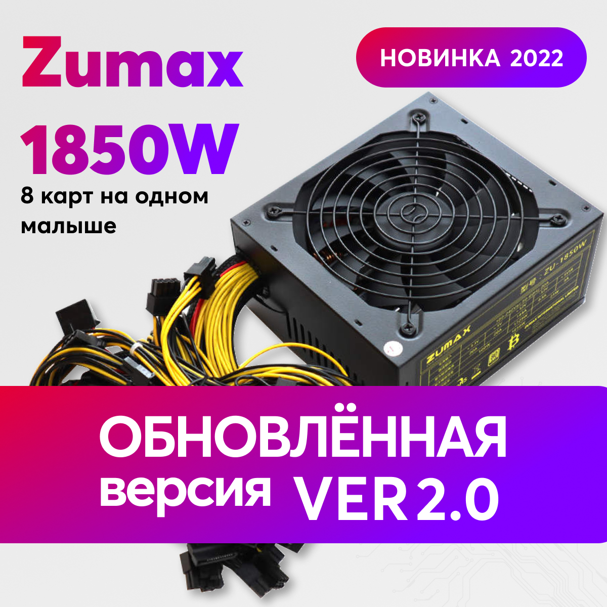 Блок питания 1850W ZUMAX ОБНОВЛЕННЫЙ rev 2.0 для майнинга фермы в 8+ видеокарт