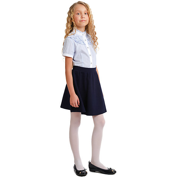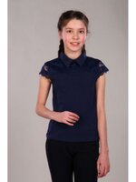Школьная блузка для девочки тм Мурлыка Миранда короткий рукав синий