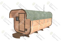 Баня-бочка из кедра квадратная длиной 5,5 метров с козырьком