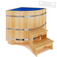 Угловая купель из кедра с пластиковой вставкой Размеры: 1100х1100х1200