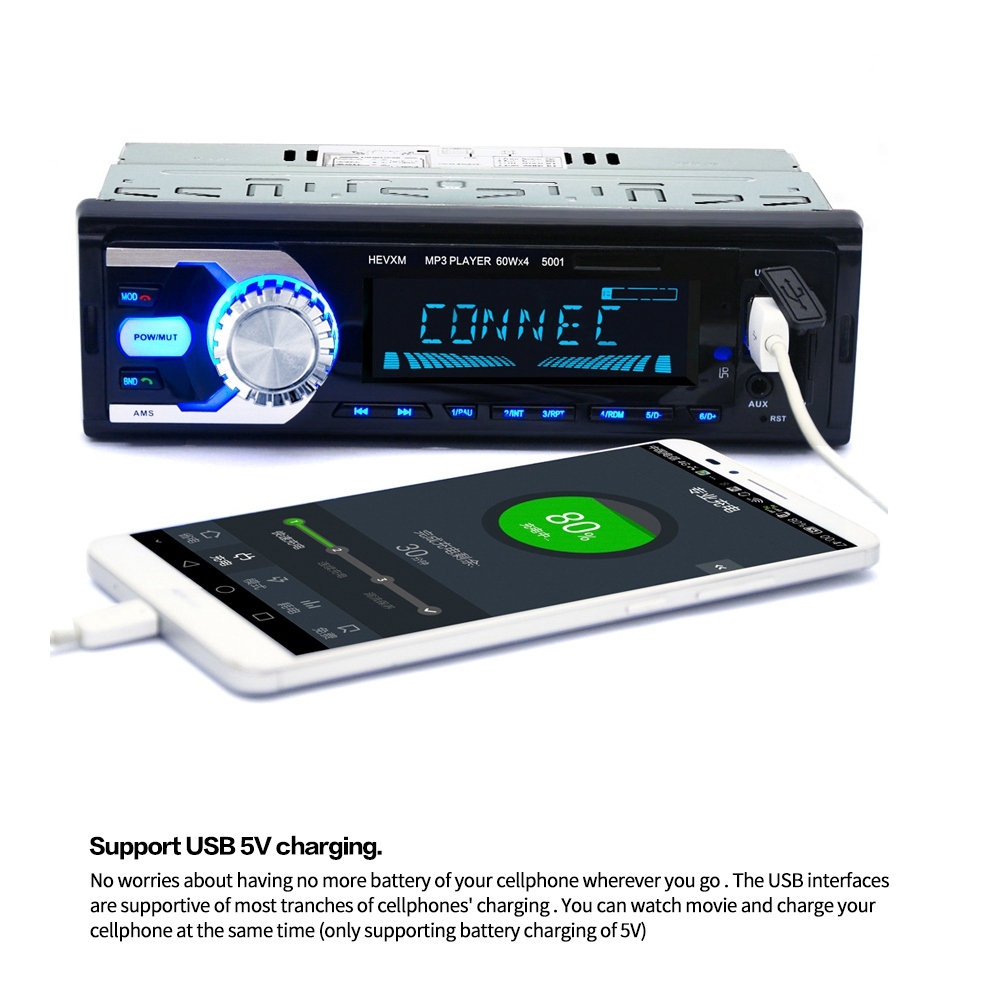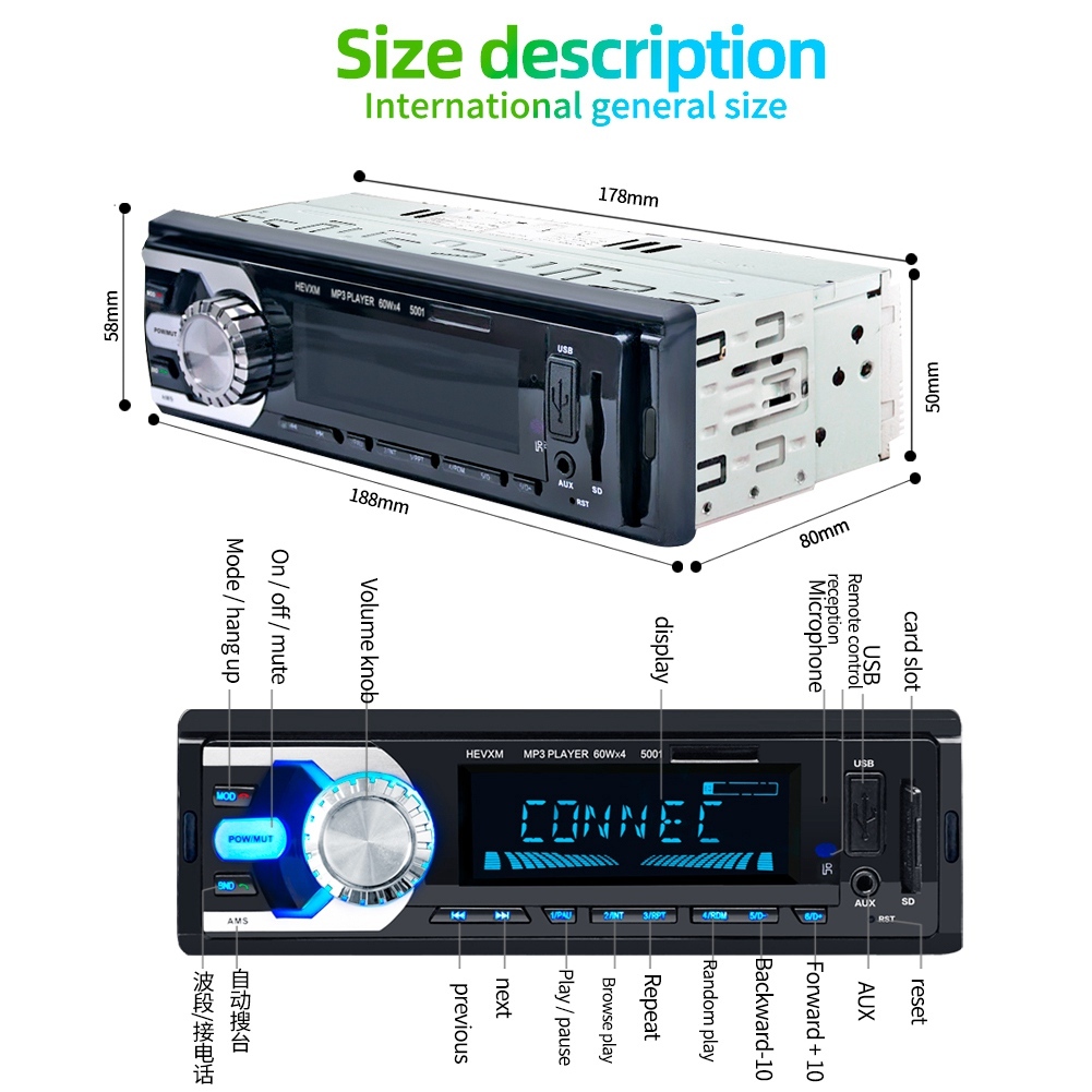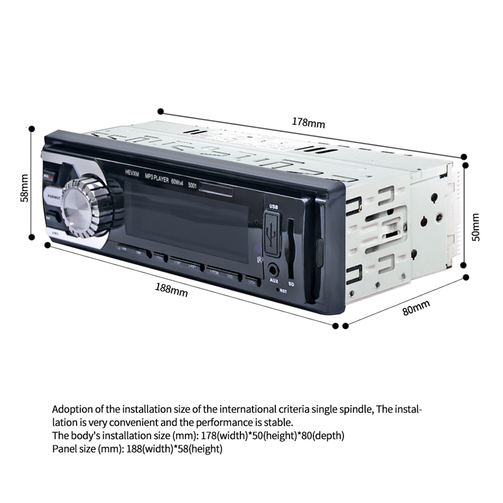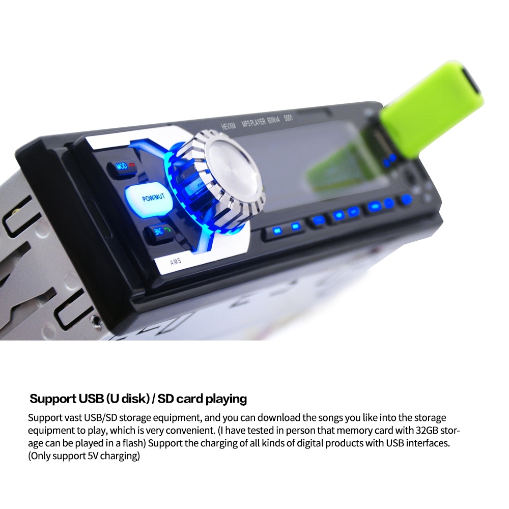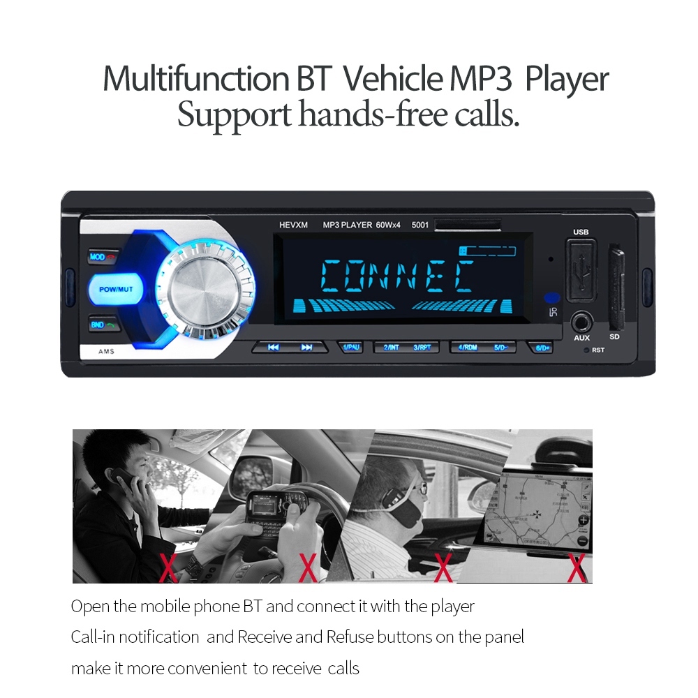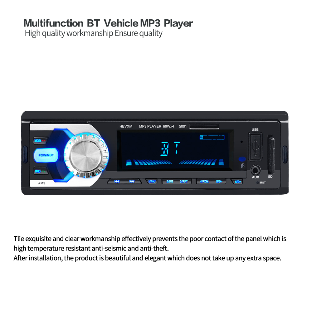 Автомобильная стереодиаумация MP3 Audio Player Onle DIN Bluetooth Audio и безрукальный звонок AM FM-радиоприемник USB Port Aux-In