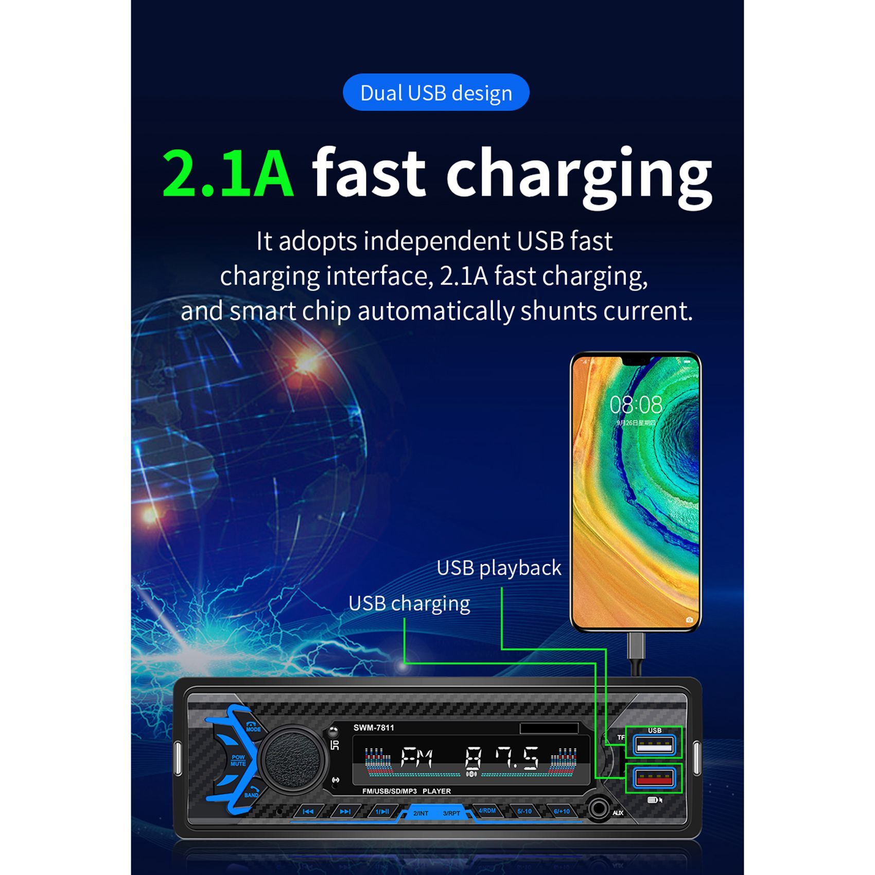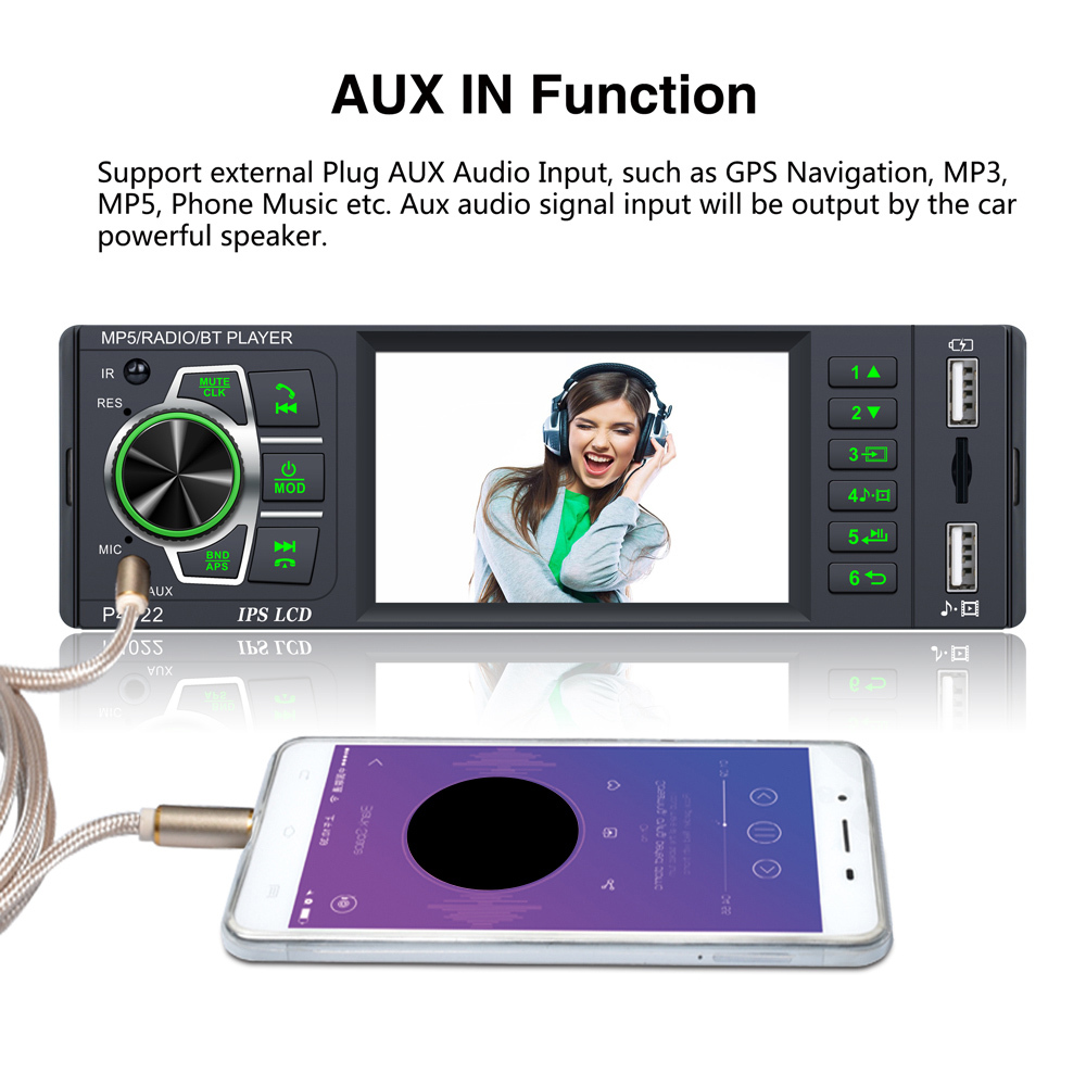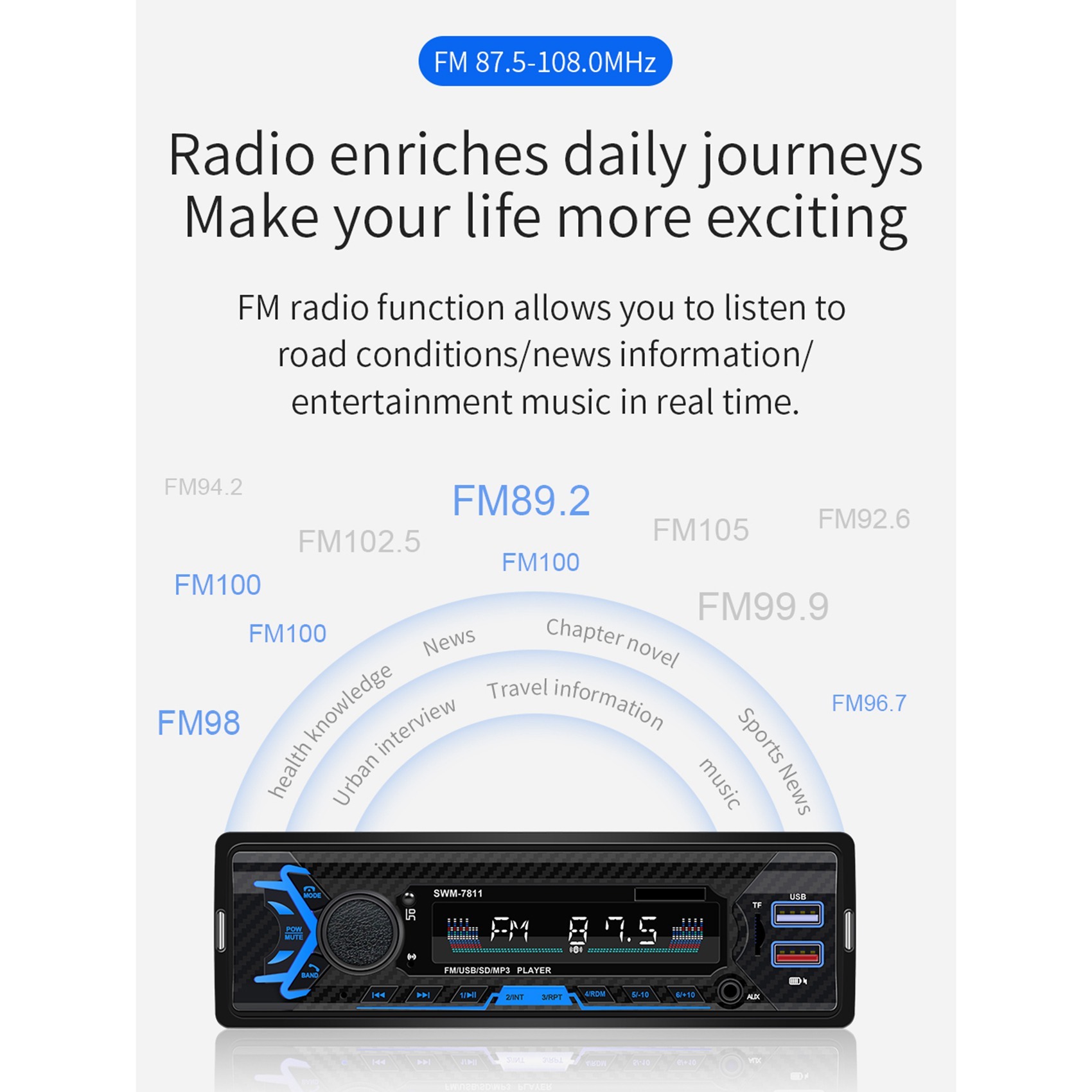 Автомобильная стереодиаумация MP3 Audio Player Onle DIN Bluetooth Audio и безрукальный звонок AM FM-радиоприемник USB Port Aux-In