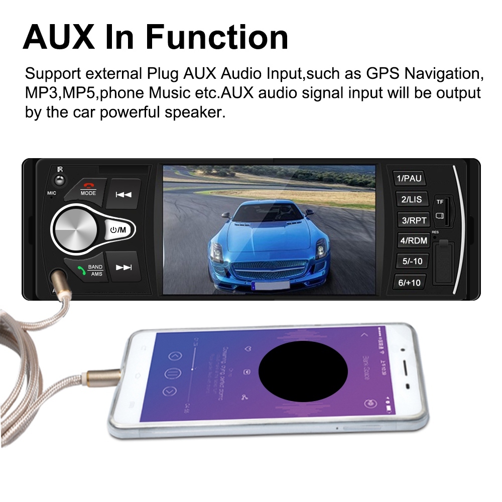 Single DIN AUTORADIO 4.1-дюймовый радиоустройство Stereo USB AUX FM Audio Player Radio Mation Audio с дистанционным управлением