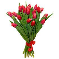 Букет к 8 марта. Тюльпаны красные. Букет 5 штук. Комплект из 4 букетов.