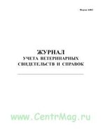 Журнал учета ветеринарных свидетельств и справок форма А003