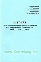 Журнал учета расхода топлива сырья материалов и их качественных характеристик ПОД-4