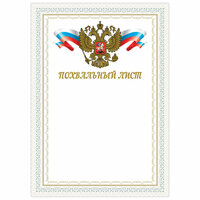 Бланк грамота "Похвальный лист", А4, мелованный картон, конгрев, тиснение фольгой, BRAUBERG