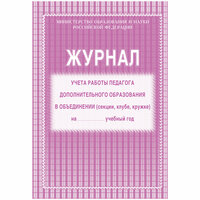 Журнал учета работы педагога дополнительного образования А4, 20л., на скрепке, блок газетка