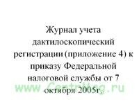 Журнал учета дактилоскопический регистрации (приложение 4) к приказу Федеральной налоговой службы от