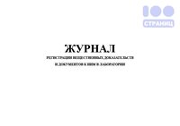 Журнал регистрации вещественных доказательств и документов к ним в лаборатории, (форма 184/у)