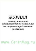 Журнал инструктажа по предупреждению попадания посторонних предметов в продукцию