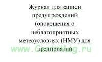 Журнал для записи предупреждений (оповещения о неблагоприятных метеоусловиях (НМУ) для предприятий