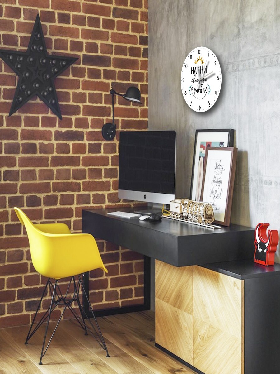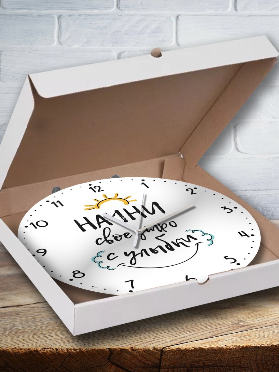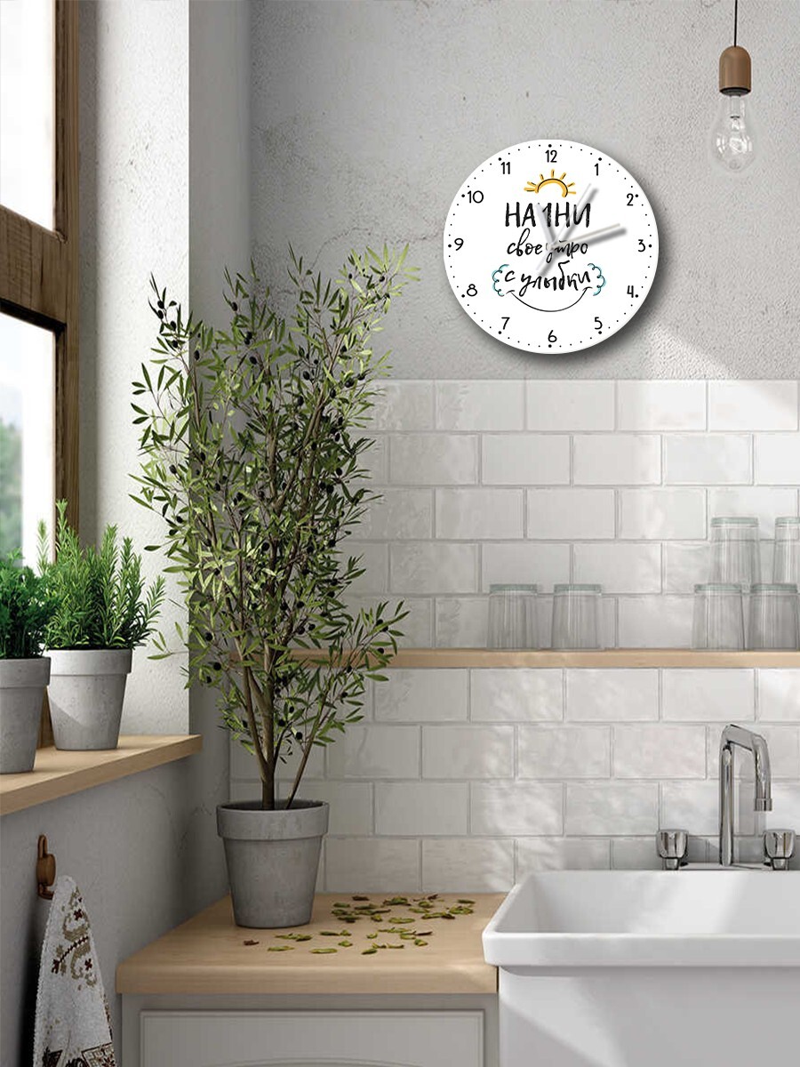 Настенные часы УФ надписи мотивация начни свое утро с улыбки - 3217
