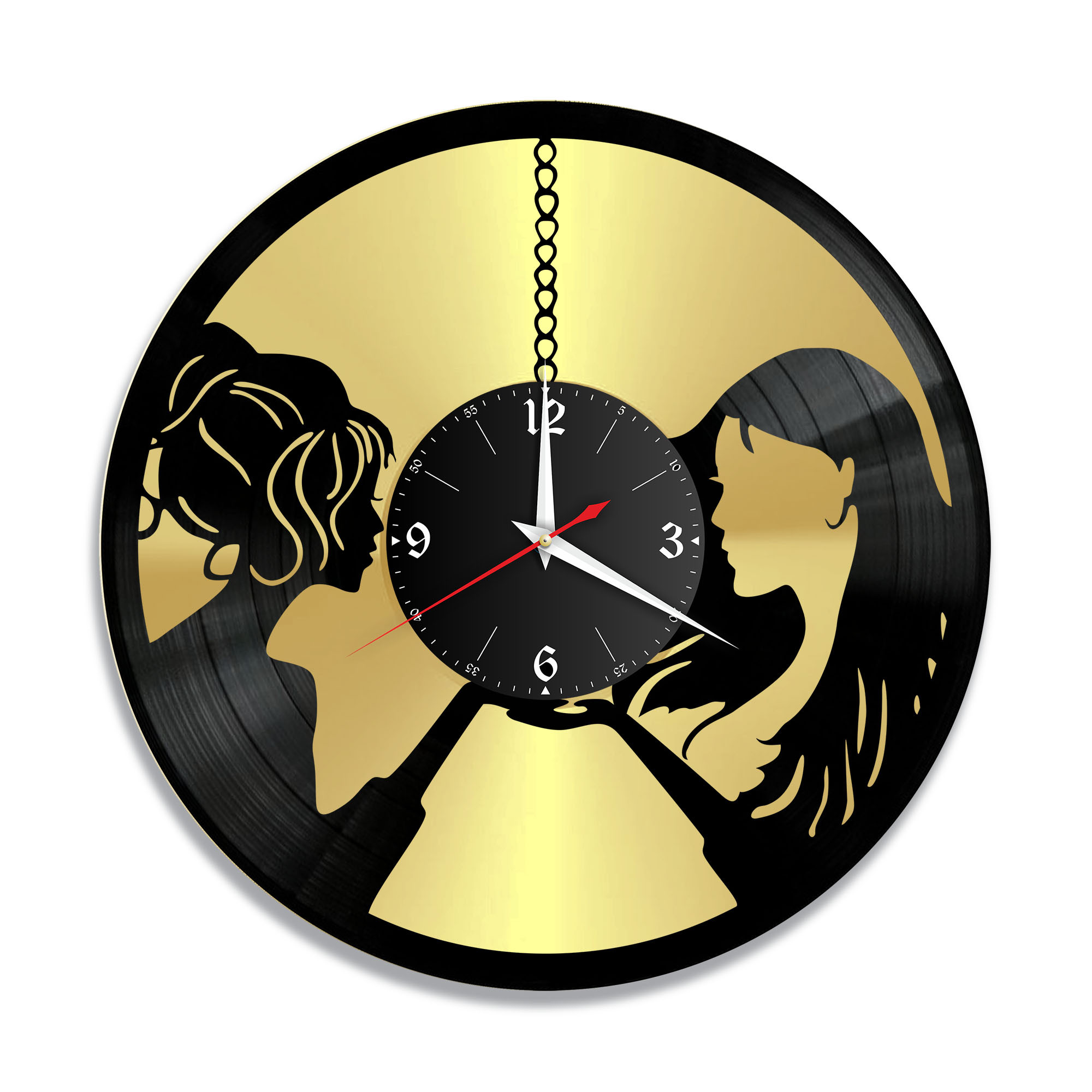 Настенные часы "2 девушки золото, из виниловой пластинки, №1", 30 см