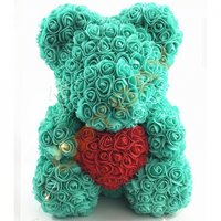 Мишка из роз 3D 40см (Бирюзовый) с сердцем