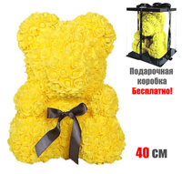Мишка из роз 40 см Жёлтый в Подарочной коробке