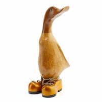 Статуэтка из дерева сидящая утка малая в золотистых ботинках (20 см)