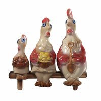 Фигурка декоративная "Петух, курица и цыпленок на скамеечке", 19 х 19 х 9 см, 3 шт