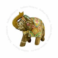 Индийская статуэтка "Слон" (дерево манго, роспись) 12х5х11см