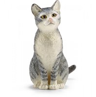 Серая полосатая кошка сидящая 4,5 см — фигурка игрушка домашнего животного Schleich 13771