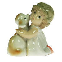 10302 Статуэтка "Девочка и щенок", фарфор 8см