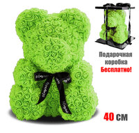 Мишка из роз 40 см Зелёный в Подарочной коробке