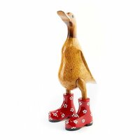 Статуэтка из дерева утка малая в красных в цветочек сапогах (25 см)