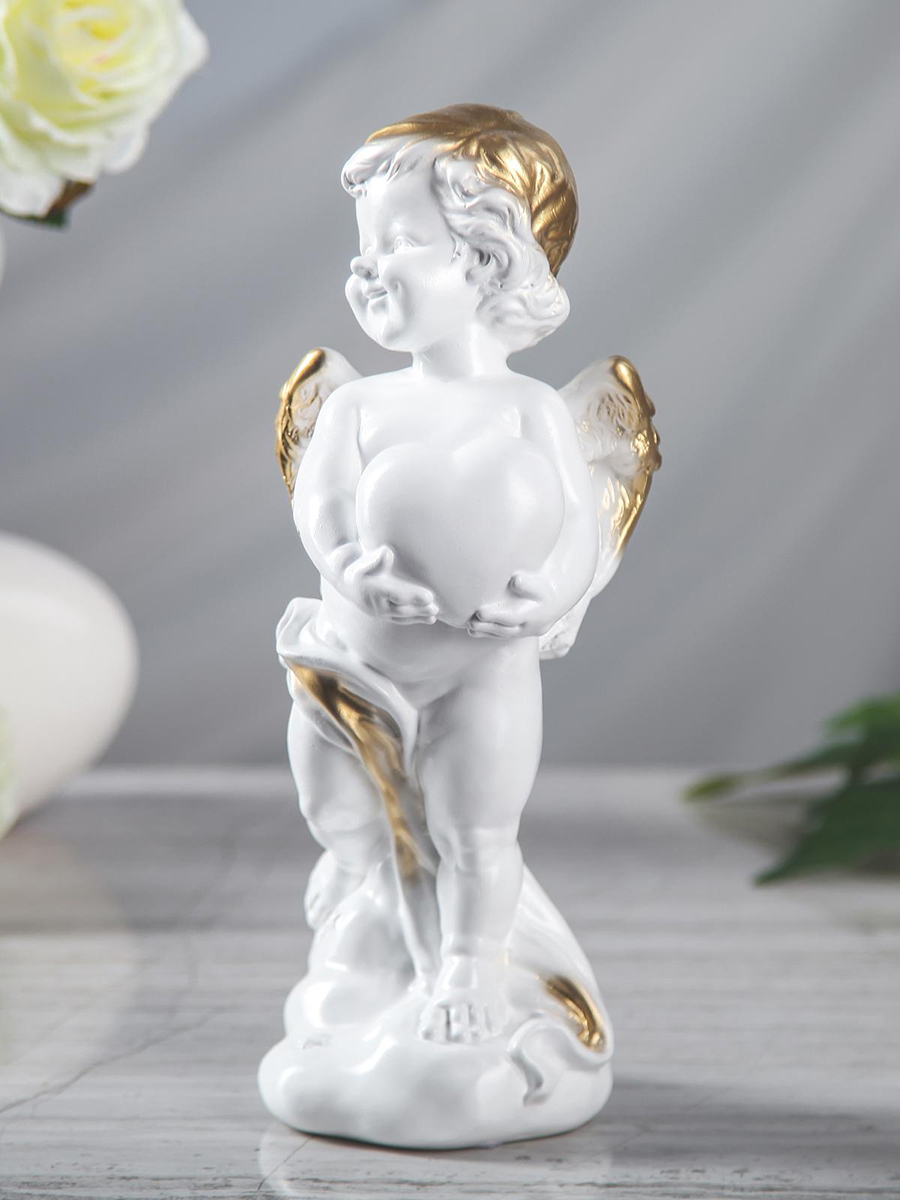 Статуэтка "Ангел с сердцем", бело-золотой, 25 см.
