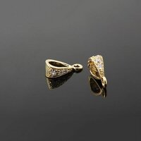 Держатель, 10*3.5мм, Корея, Треугольник с фианитами, позолоченный