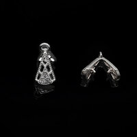 Держатель, 11*5 мм, Корея, ажурный с фианитами, зажимной, с петелькой, родий