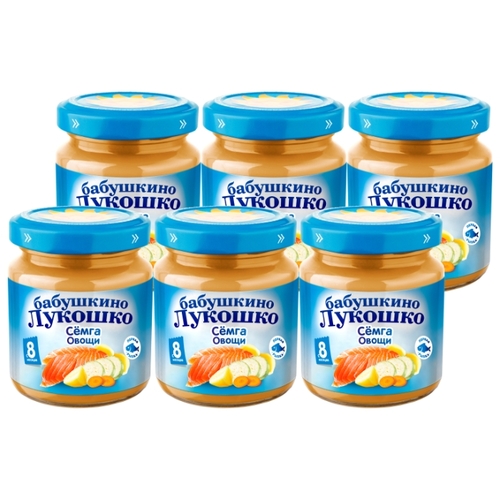 Пюре Бабушкино Лукошко семга-овощи (с 8 месяцев) 100 г, 6 шт.