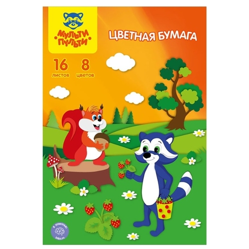 Цветная бумага Приключения Енота Мульти-Пульти, A4, 16 л., 8 цв.