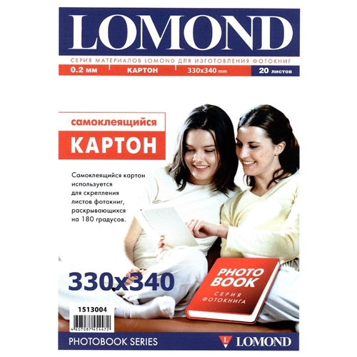Белый картон двусторонний самоклеящийся Lomond, 33x34 см, 20 л.
