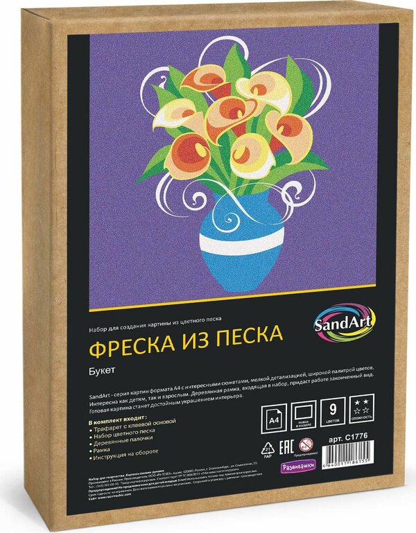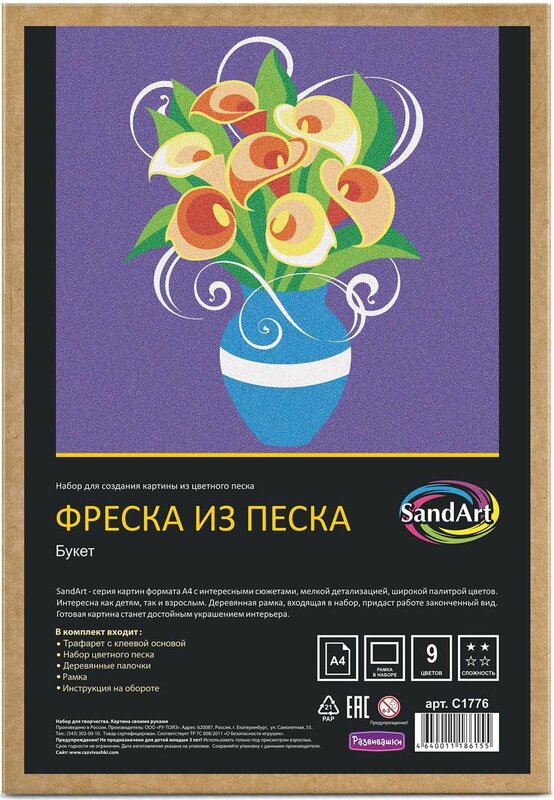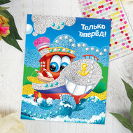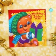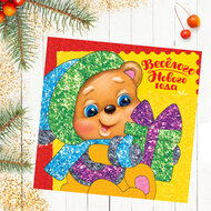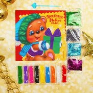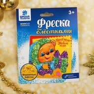 Фреска из песка Школа талантов песком и форменными блёстками 'Весёлого Нового года!' мишка