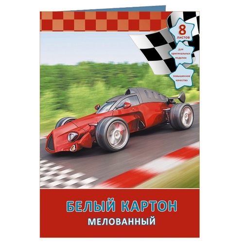 Белый картон мелованный Гоночная машина Unnika land, 20x28 см, 8 л.