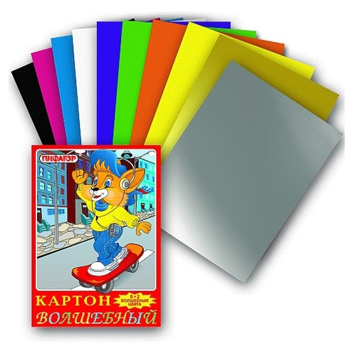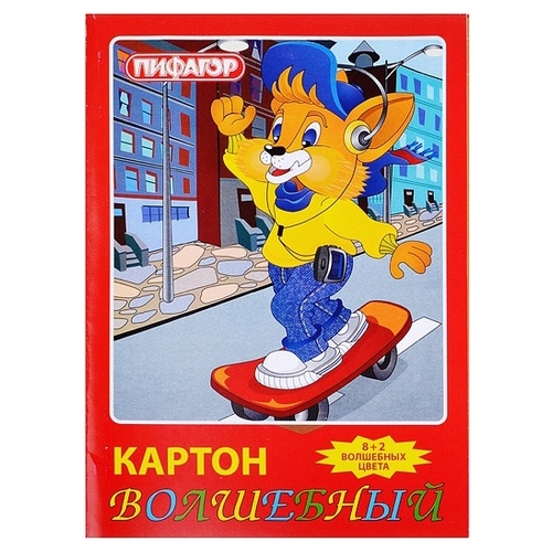 Цветной картон волшебный Лисенок на скейте Пифагор, A4, 10 л., 10 цв.