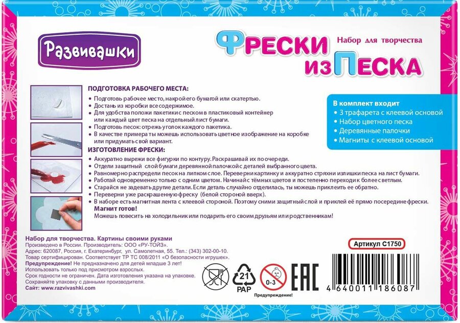 Фреска из песка Развивашки Дед мороз снежинка елочка