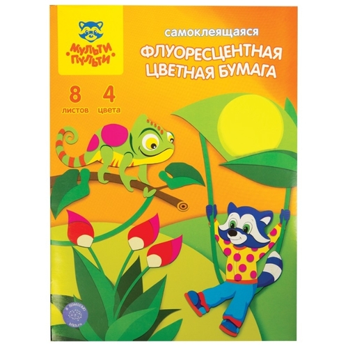 Цветная бумага самоклеящаяся флуоресцентная Мульти-Пульти, A4, 8 л., 4 цв.