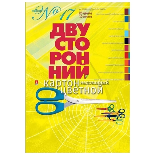 Цветной картон Двусторонний мелованный №17 Альт, A4, 10 л., 20 цв.