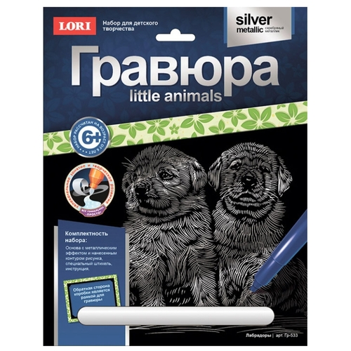 Гравюра LORI Little Animals. Лабрадоры (Гр-533) серебристая основа