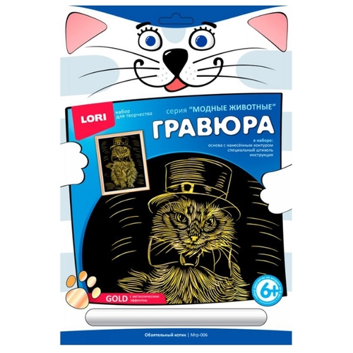 Гравюра LORI Модные животные. Обаятельный котик (Мгр-006) золотистая основа