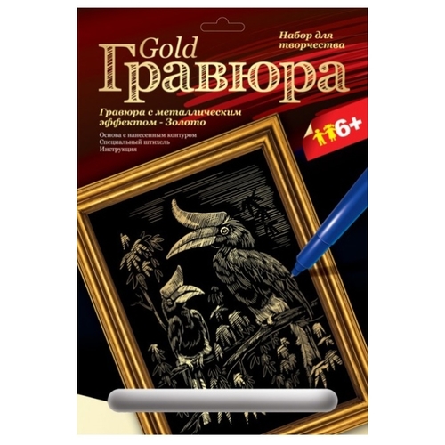 Гравюра LORI Птица-носорог (Гр-113) золотистая основа