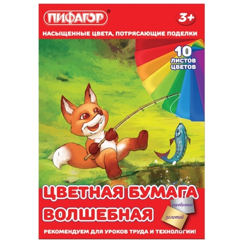 Цветной картон волшебный Лисенок на скейте Пифагор, A4, 10 л., 10 цв.