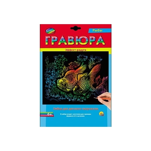 Гравюра Рыжий кот Рыбки, в конверте (Г-2584) цветная основа